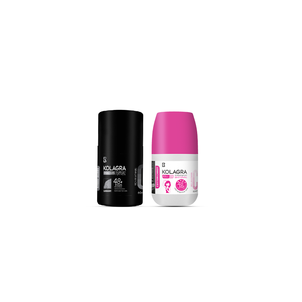 Experience long-lasting freshness together with the Kolagra Deodorant Roll-On Bundle, designed specifically for both men and women. This dual pack includes one deodorant roll-on for him and one for her, ensuring 24-hour protection against sweat and odor.
