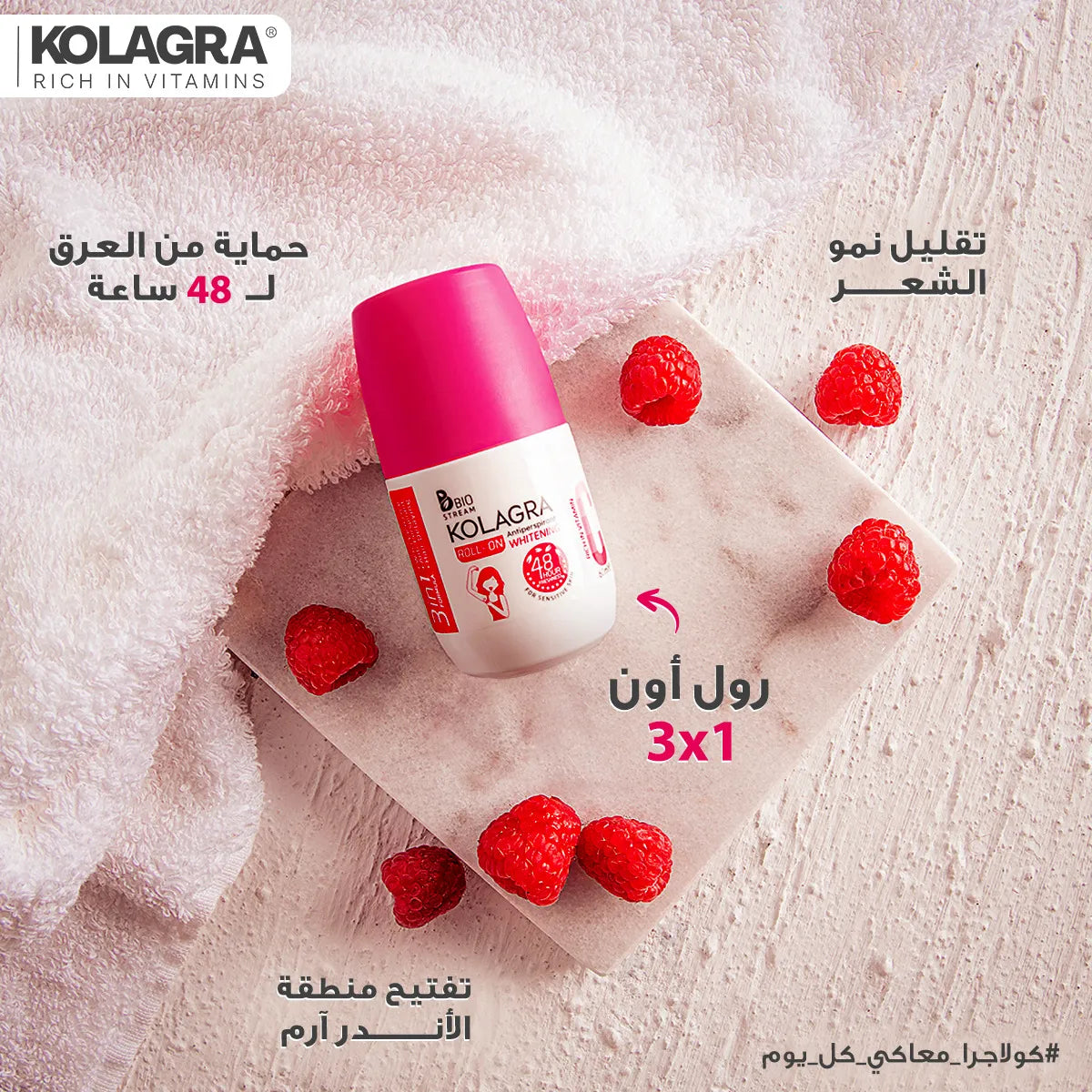 • Kolagra Whitening roll on 3 in 1 Whitening, Anti-perspirant , and Hair delaying.